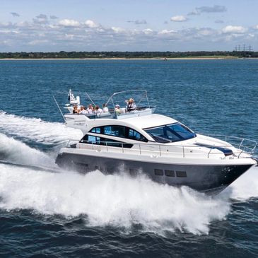 Drop anchor outside The Hut in this spectacular flybridge Fairline Squadron 50.